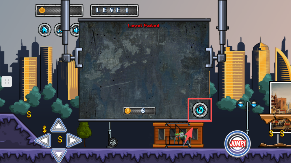4、如果失败,点击重试按钮再次挑战,利用金币升级赛车。