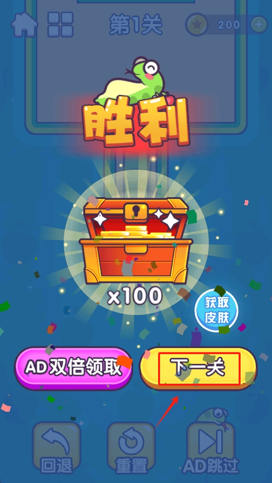 4、完成第一关后,点击“下一关”按钮,继续游戏。