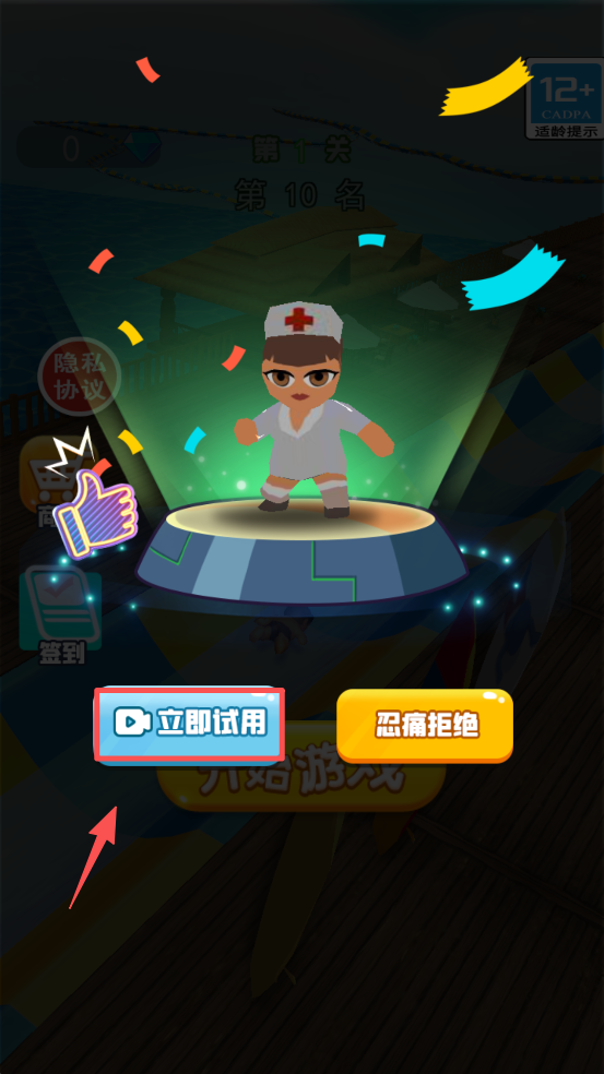 3、点击“立即试用”按钮,体验游戏内容,无需等待。