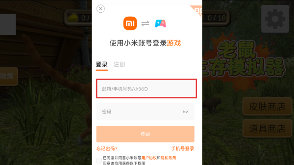 1、打开界面,输入【邮箱】或【手机号码】或【小米ID】。