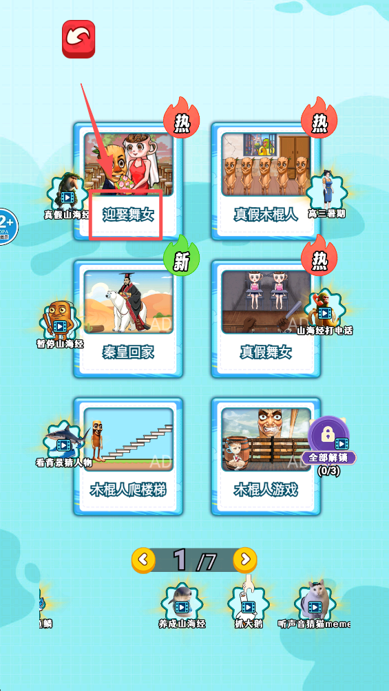 2、在游戏首页,点击“迎娶舞女”图标,进入游戏关卡选择页面。