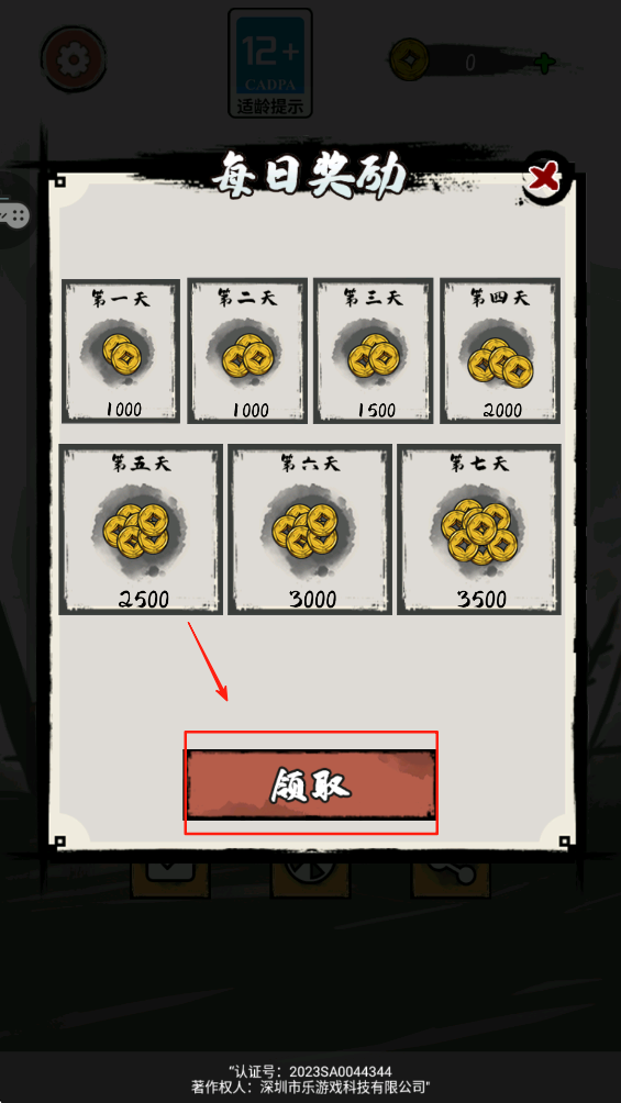 2、查看每日奖励,点击“领取”按钮获取金币。