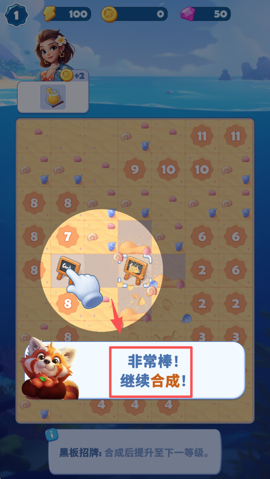 2、继续合成更高级的物品,如黑板招牌,以提升等级并解锁新功能。