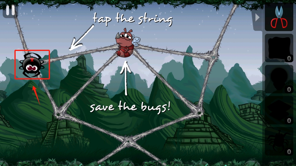 4、在游戏内,点击蜘蛛网上的丝线,拯救被困的小虫,完成关卡目标。