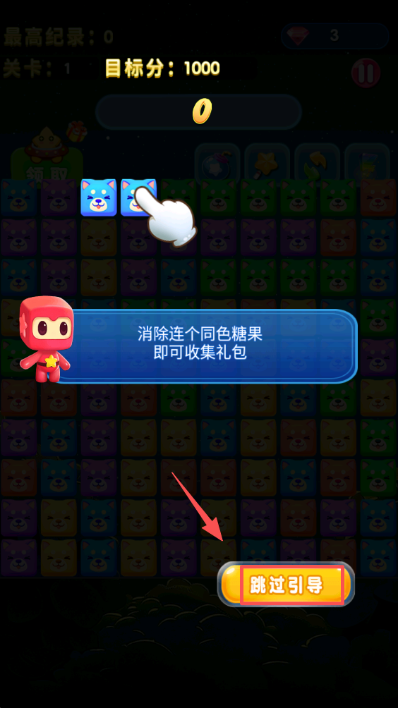 2、如果你已经熟悉游戏,可以点击“跳过引导”按钮,直接进入游戏,节省时间。