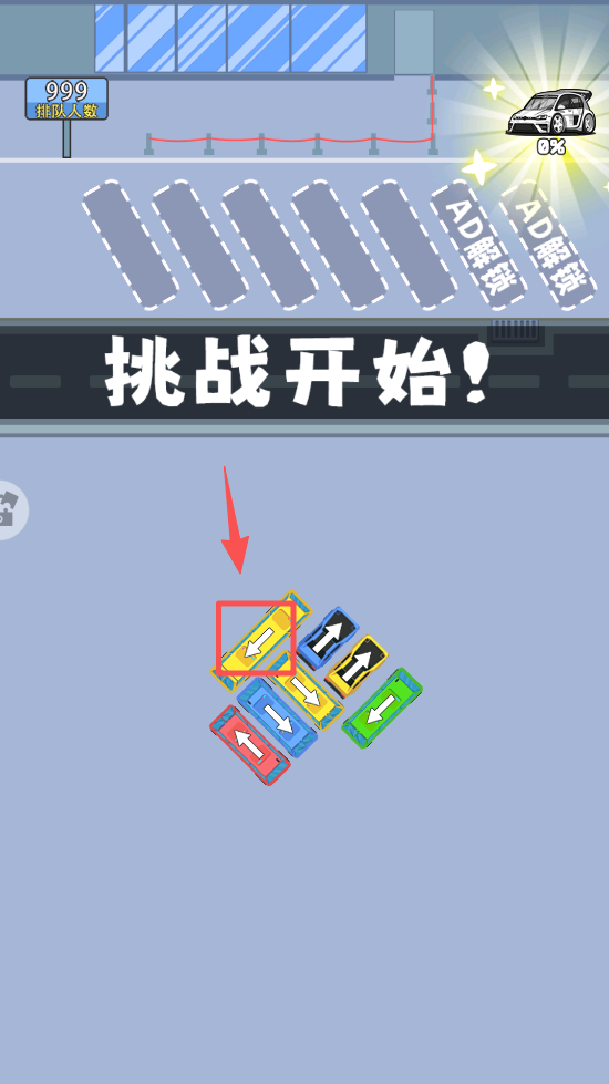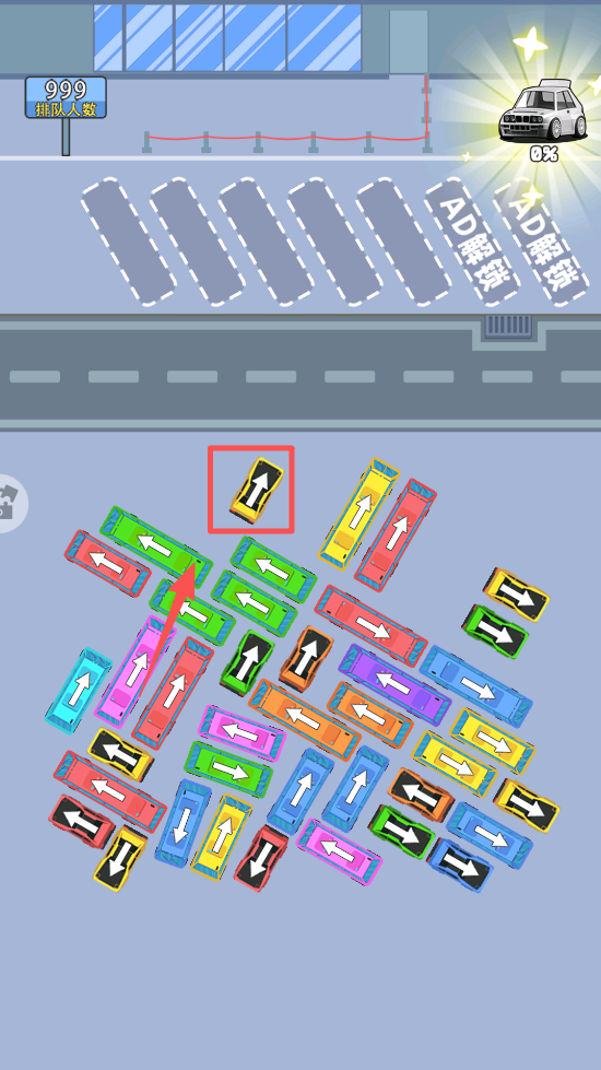 2、依次选择对应颜色的车辆,通过滑动或点击控制其移动方向,精确地将车辆停放到指定位置,考验玩家的操作技巧。