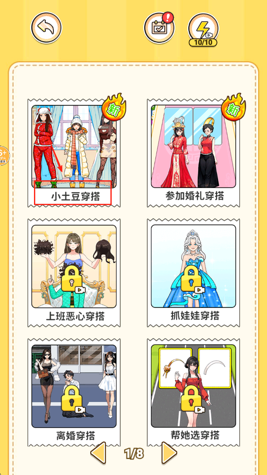 2、每个主题都有不同的穿搭要求,选择后根据提示进行搭配。