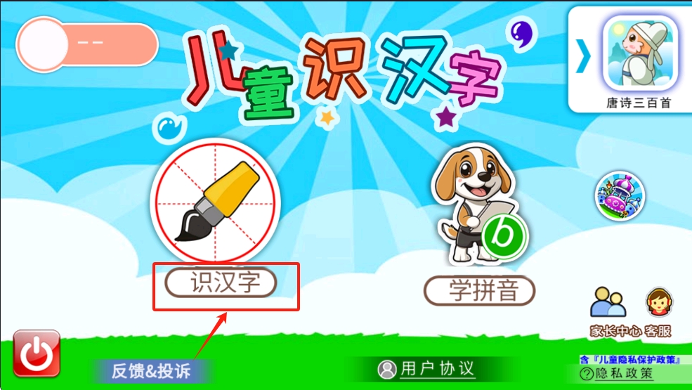 1、在应用主界面,点击“识汉字”按钮,进入相应的学习模块。
