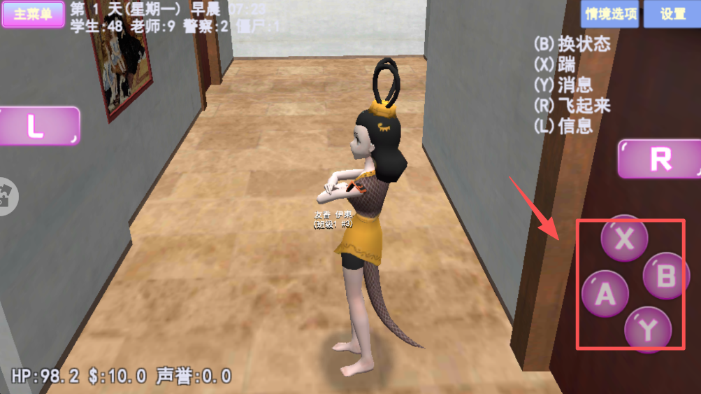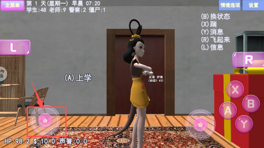 2、通过左右滑动控制角色移动,让角色去学校,开始一天的活动。