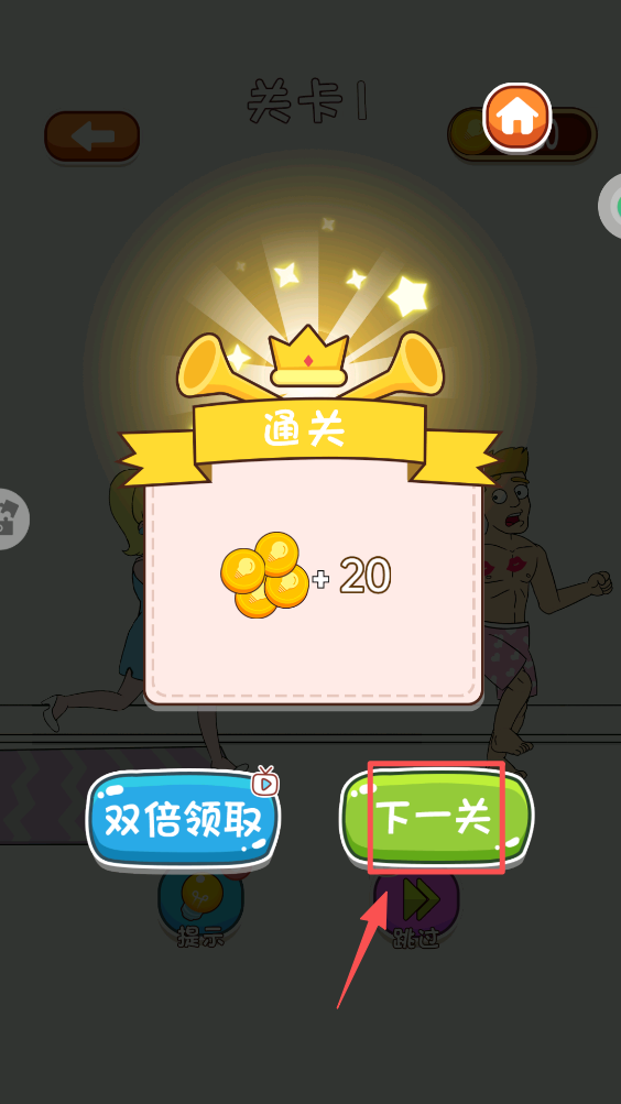 4、通关后,点击“下一关”按钮,继续游戏。
