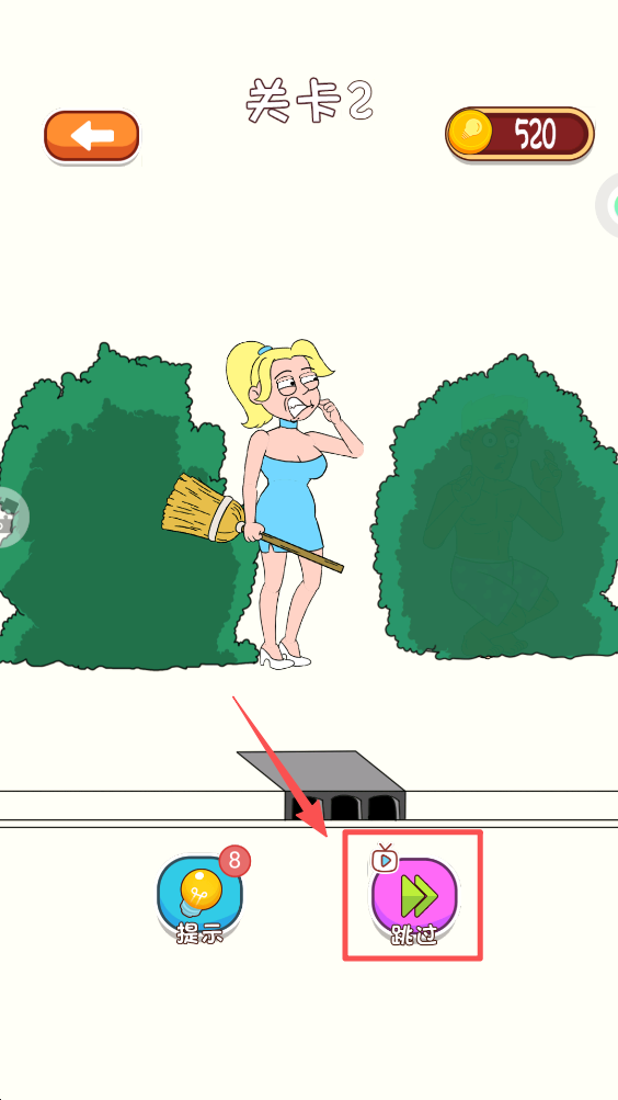 3、在关卡1中,点击“跳过”按钮,快速开始游戏。