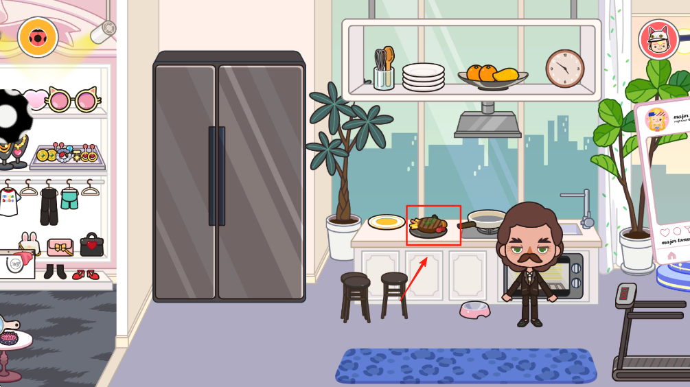 3、在厨房中为角色准备食物,点击食物并选择烹饪选项。