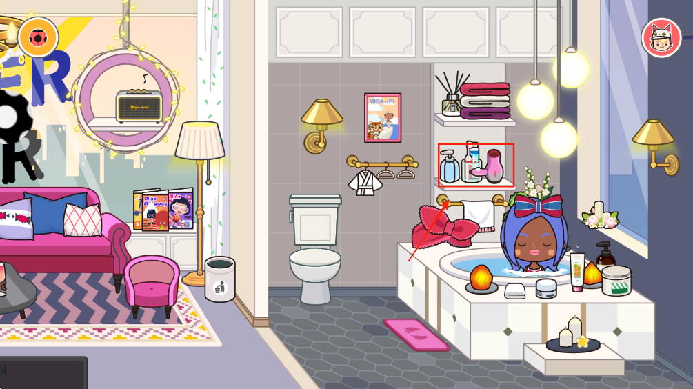 4、在浴室中照顾角色,点击浴缸并选择洗浴用品。