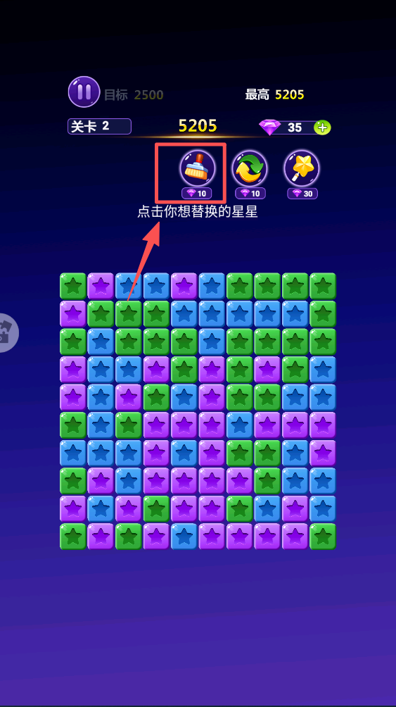 3、合理使用道具是关键,例如“星光指南”可提示潜在消除组合,“全域消除”可一键清空大量同色星。