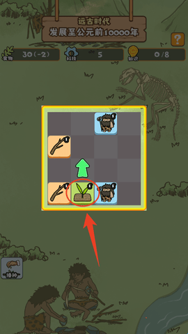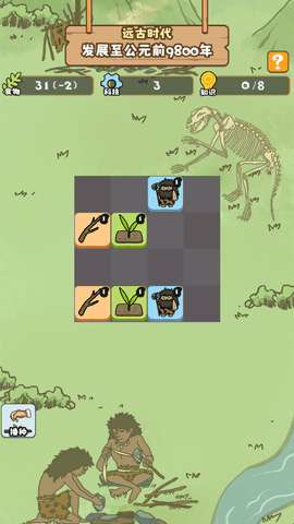 7、这样三个食物地格相邻,就会发生【消除】,同时也会获得食物,接下来,就可以继续通过移动地格或使用技能等,进行文明发展模拟了。