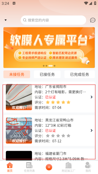 膜军是一款专注于软膜行业工程对接的专业服务平台,通过智能化匹配技术连接全国范围内的安装技师、加工厂和工程项目需求方。平台采用基于LBS的地理围栏技术,可实现5公里范围内的精准供需匹配,响应时间缩短至30秒内。独创的信用评价体系对服务方进行11个维度的能力认证,确保工程质量达标率提升至98%。每日更新超1000个软膜类工程需求,涵盖天花、墙面等6大应用场景,支持在线比价、电子签约、进度追踪等全流程服务。智能算法可根据历史接单数据推荐最优项目,帮助技师提升30%以上收入。
