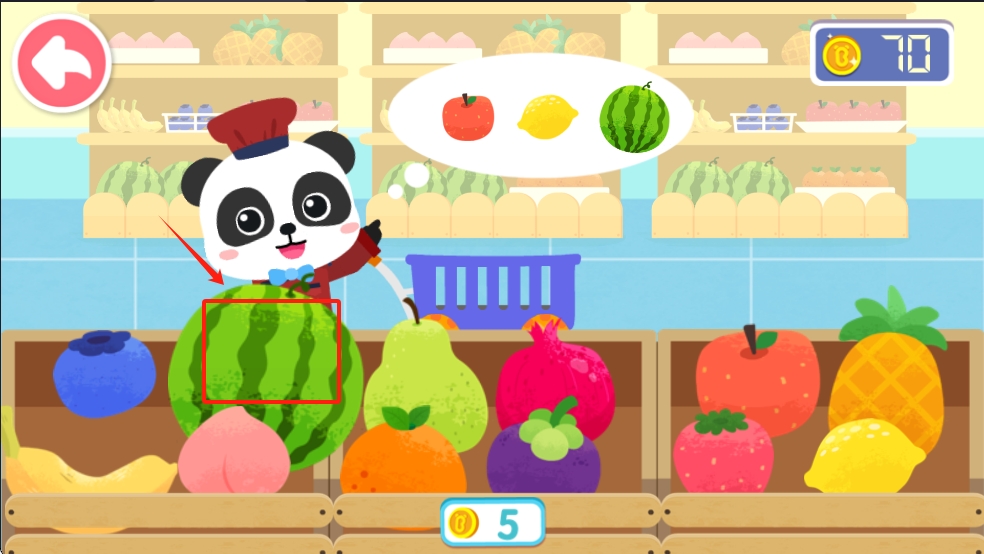 1、在超市场景中,根据提示选择正确的水果,例如选择西瓜。