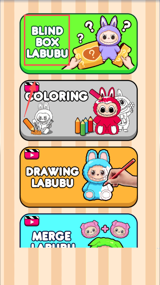 1、点击播放按钮开始游戏,选择“BLIND BOX LABUBU”体验盲盒乐趣。
