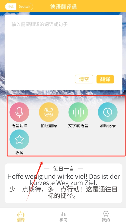 德语翻译通专注于提供高质量的德语翻译与学习服务,内置多种翻译功能,包括拍照翻译,语音识别与文字转换,用户可通过简洁明了的界面轻松实现高效翻译,快速获取所需的德语信息。