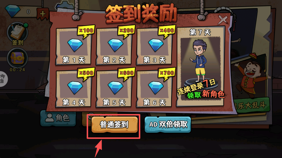 4、每日签到领取奖励,连续登录七天可解锁新角色,增加游戏乐趣。