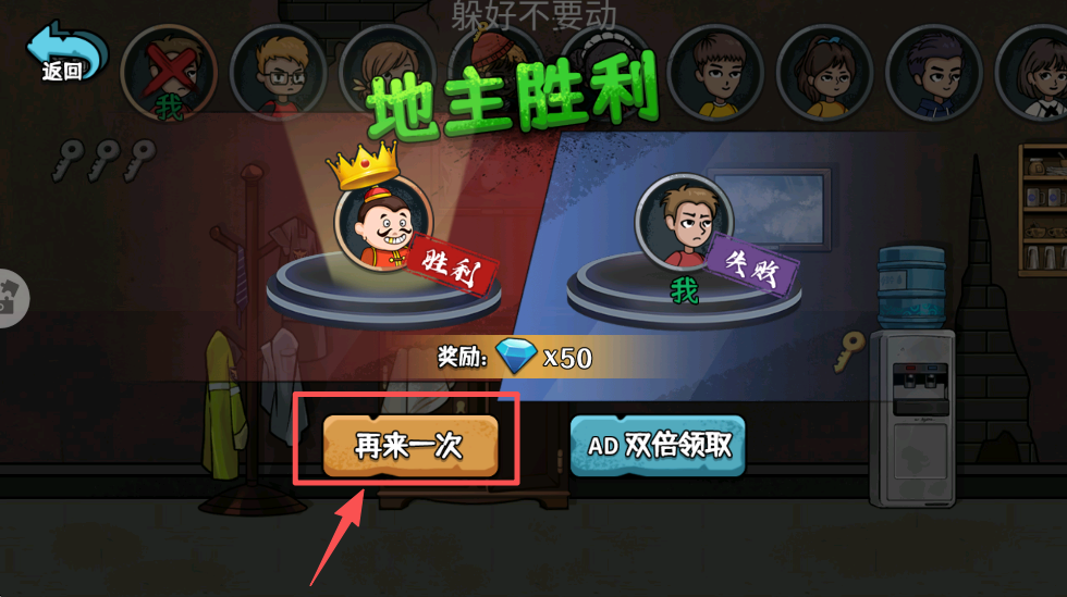3、游戏结束后点击“再来一次”,继续挑战,争取下次胜利。