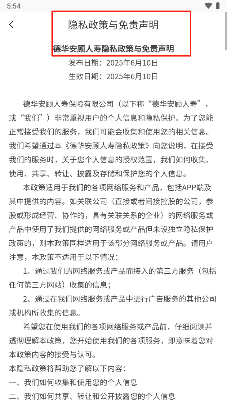 4、阅读隐私政策与免责声明。在隐私政策与免责声明页面,了解如何收集和使用个人信息。