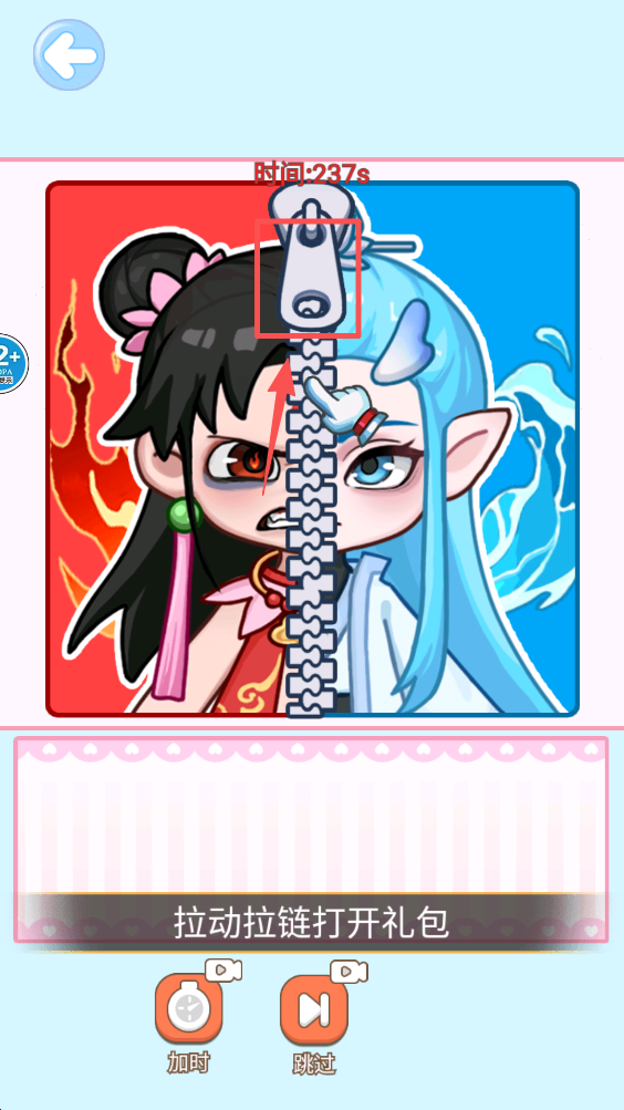 3、在关卡中,拉动拉链打开礼包,获取奖励或继续游戏的道具。