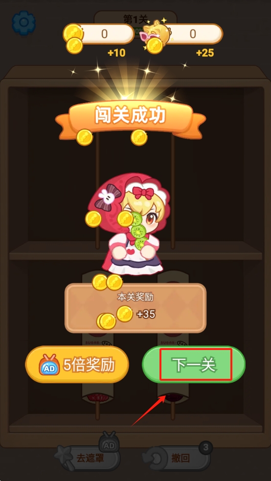 4、完成关卡后,继续点击“下一关”按钮,挑战更高难度的关卡。