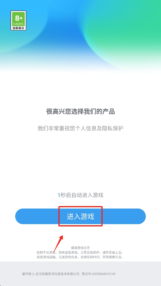 1、首先,点击“进入游戏”按钮,开始游戏旅程。