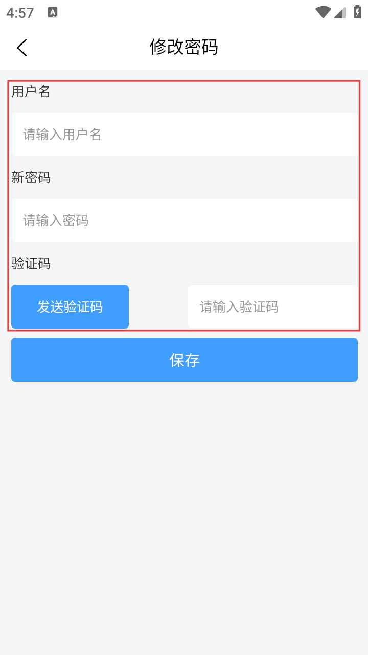 3、在【修改密码】页,依次填用户名、新密码、验证码,获取并填入。