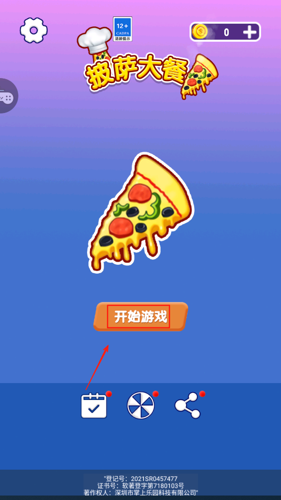 1、点击主界面的“开始游戏”按钮,进入游戏,开始你的披萨制作挑战。