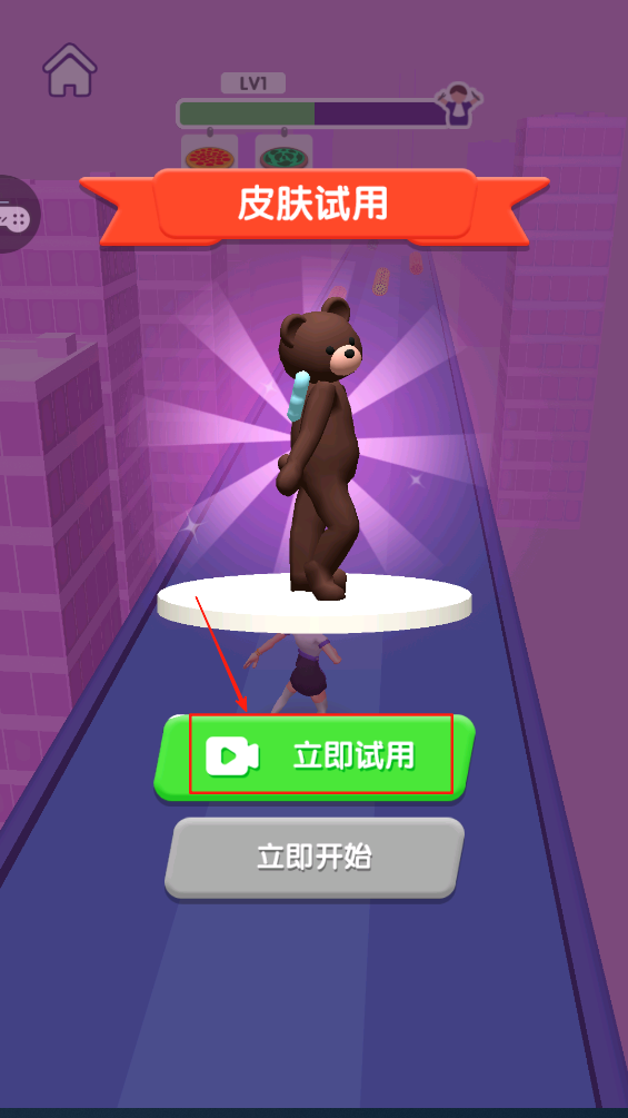 4、在皮肤试用界面,点击“立即试用”按钮,体验不同角色皮肤,增加游戏乐趣。