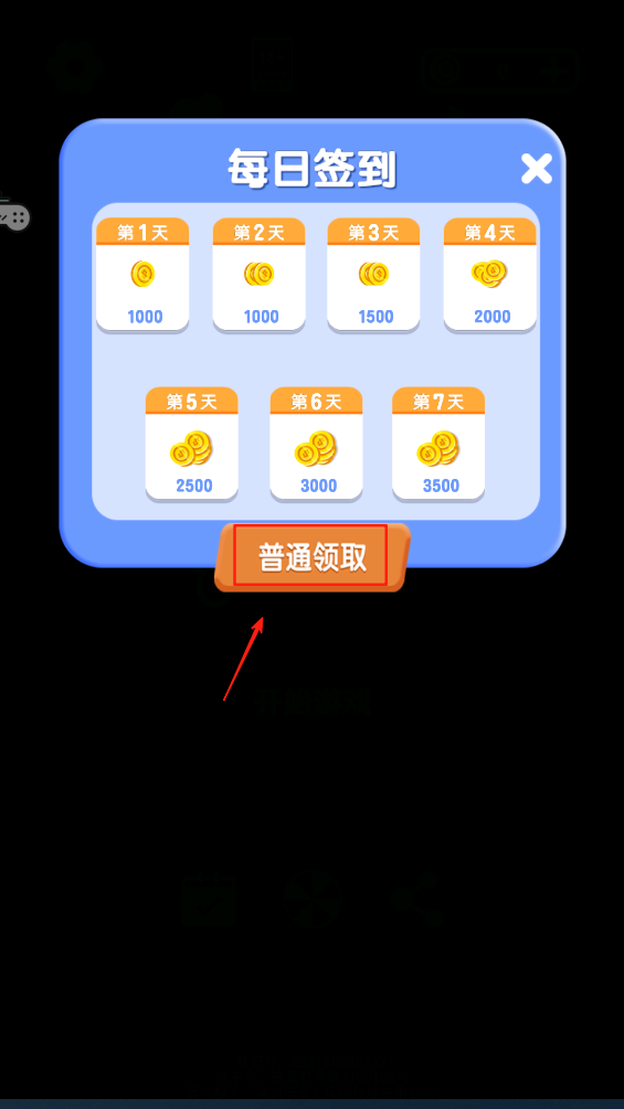 2、在签到界面点击“普通领取”按钮,领取每日奖励,积累金币和道具。