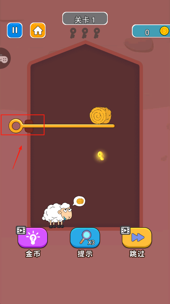 2、拖动屏幕上的横杆,打开门拯救小绵羊,完成关卡目标。