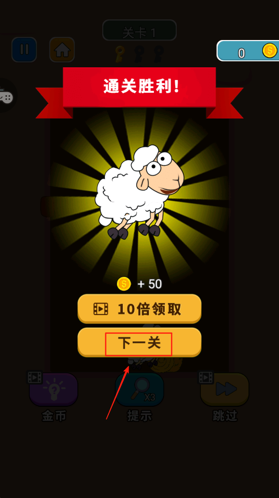 3、通关后点击“下一关”继续游戏获取更多奖励。