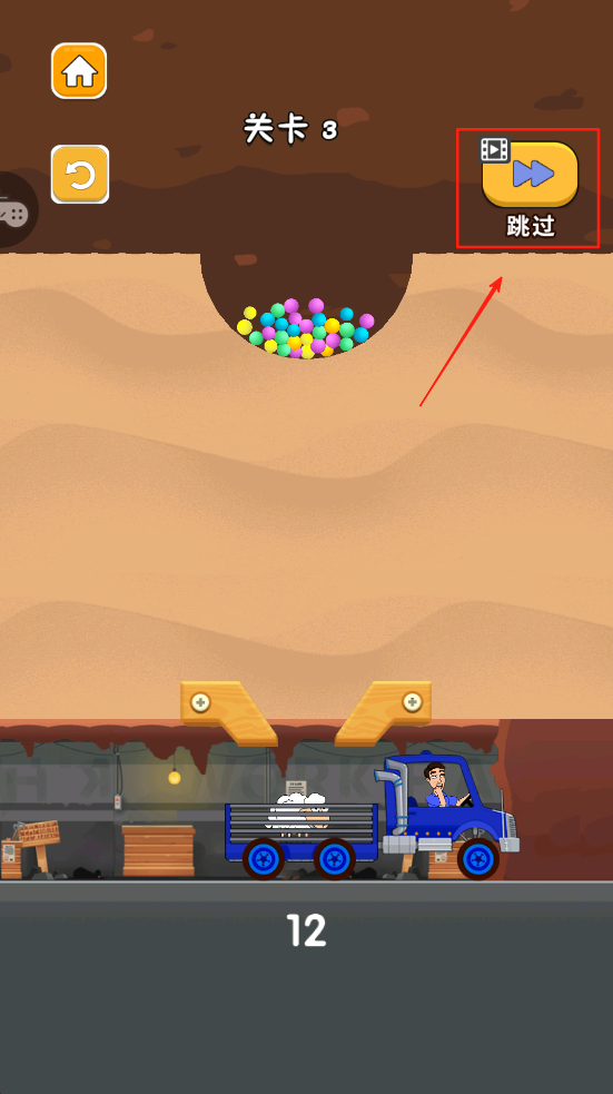 4、遇到困难时,点击“跳过”按钮,直接进入下一关卡继续游戏。