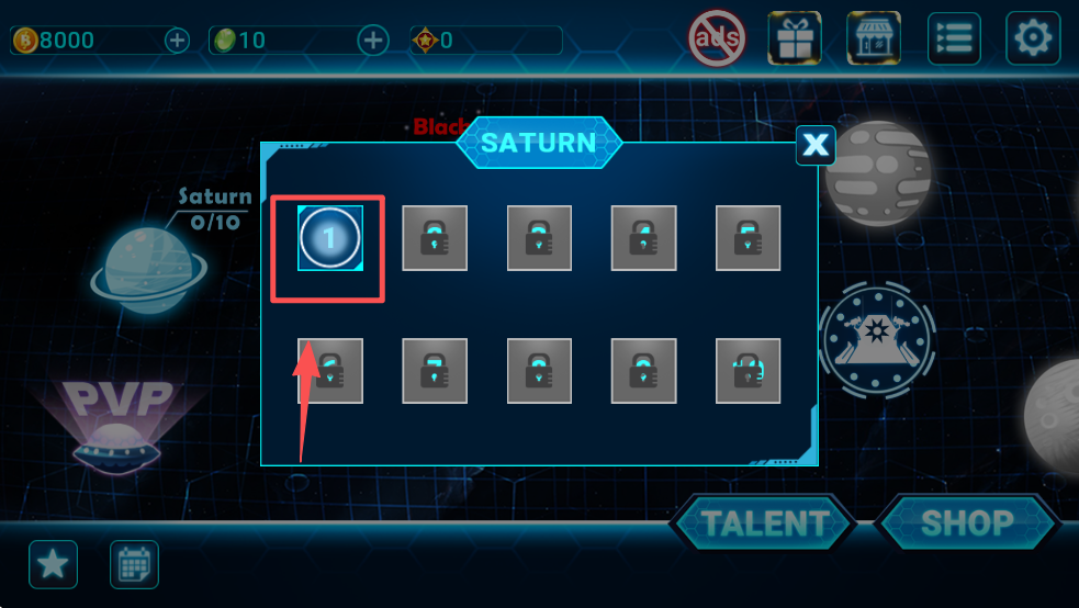 2、点击“TALENT”按钮,选择天赋技能,增强角色能力。