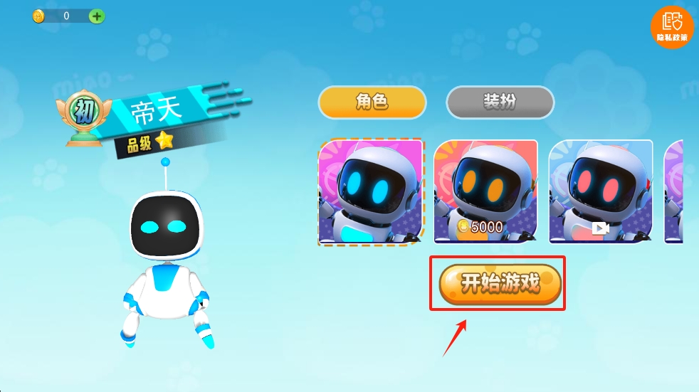 1、点击屏幕上的“开始游戏”按钮,进入游戏主界面,准备开始冒险。
