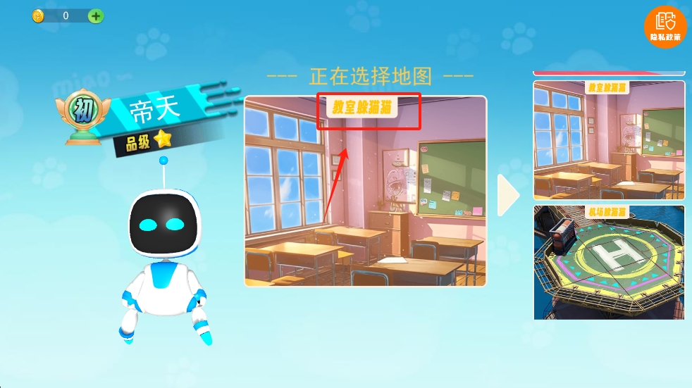 2、在地图选择界面,点击你想要进行游戏的地图,例如“教室躲猫猫”,开始游戏。