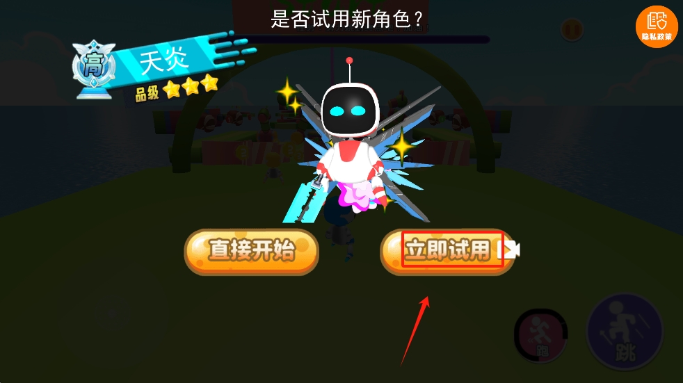 4、选择新角色“天炎”,点击“立即试用”按钮,体验角色的特殊能力。