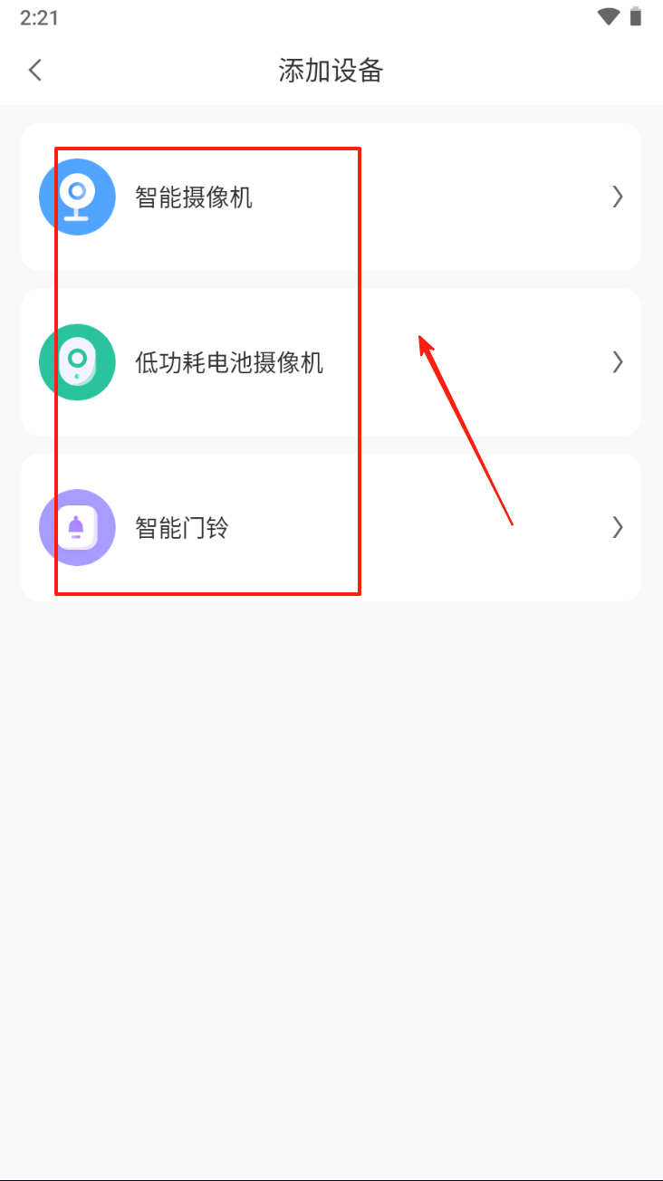 2、点击右上角的“+”号添加设备。进入设备添加页面,选择要添加的设备类型。