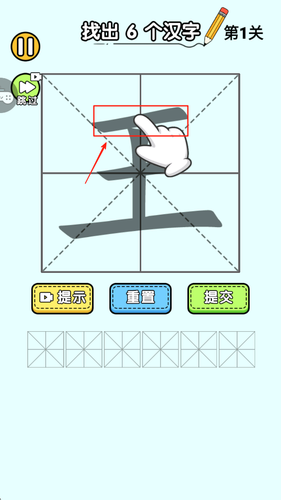 4、在关卡中,按照提示找出所有汉字,点击“提交”完成关卡,挑战自我。