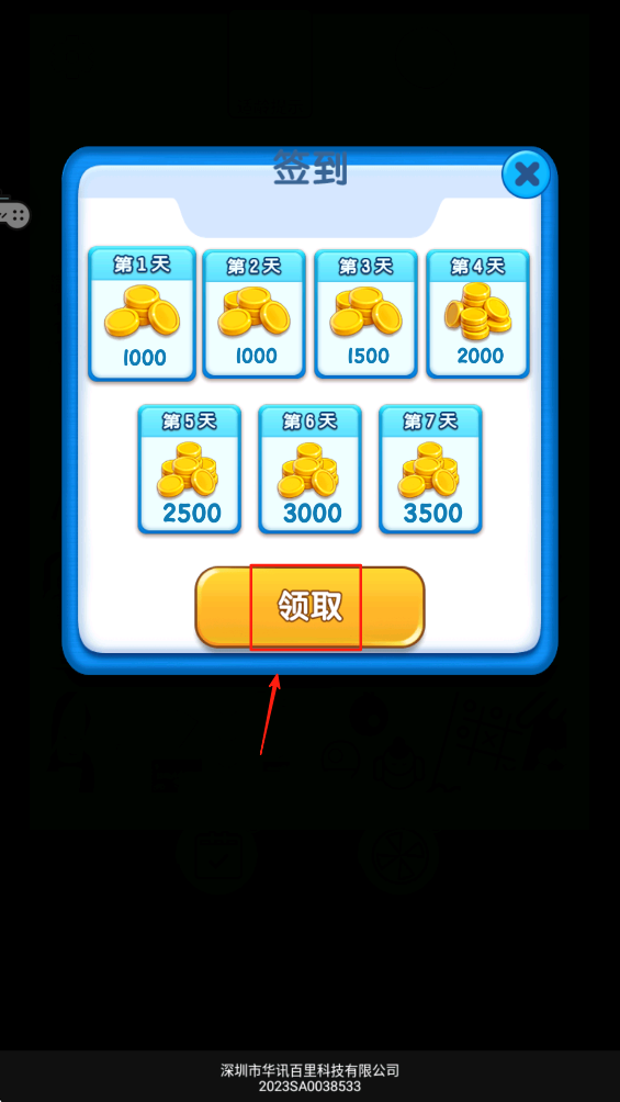 2、点击“签到”领取每日奖励,累积金币,为后续游戏做准备。