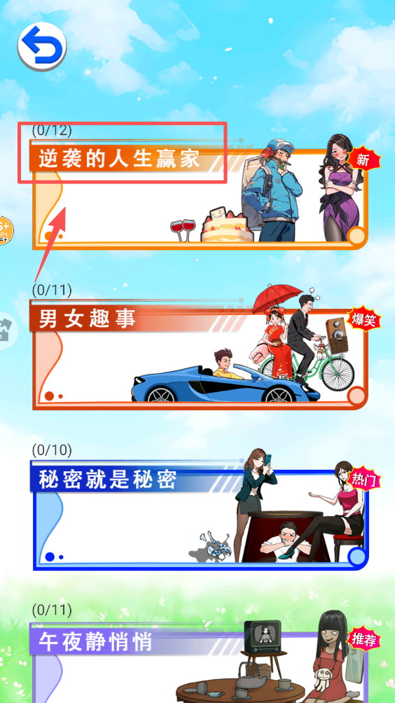 2、选择一个关卡,如“逆袭的人生赢家”,点击开始挑战,体验不同的故事。