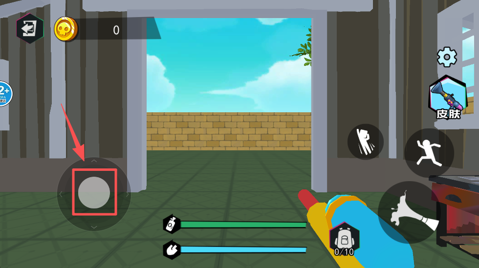 2、通过点击屏幕上的虚拟摇杆,控制角色移动,寻找敌人位置。