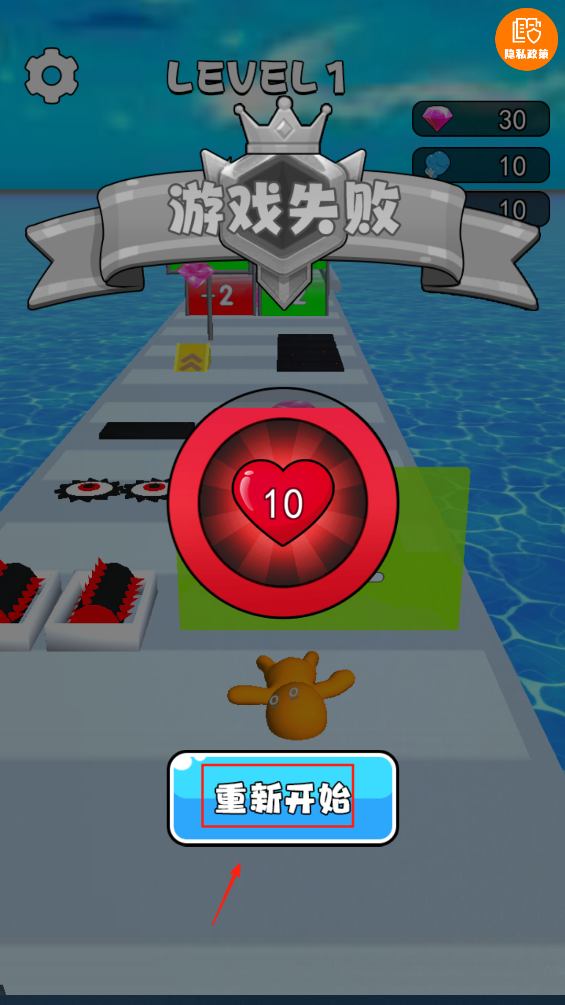4、如果游戏失败,点击“重新开始”按钮,继续挑战。
