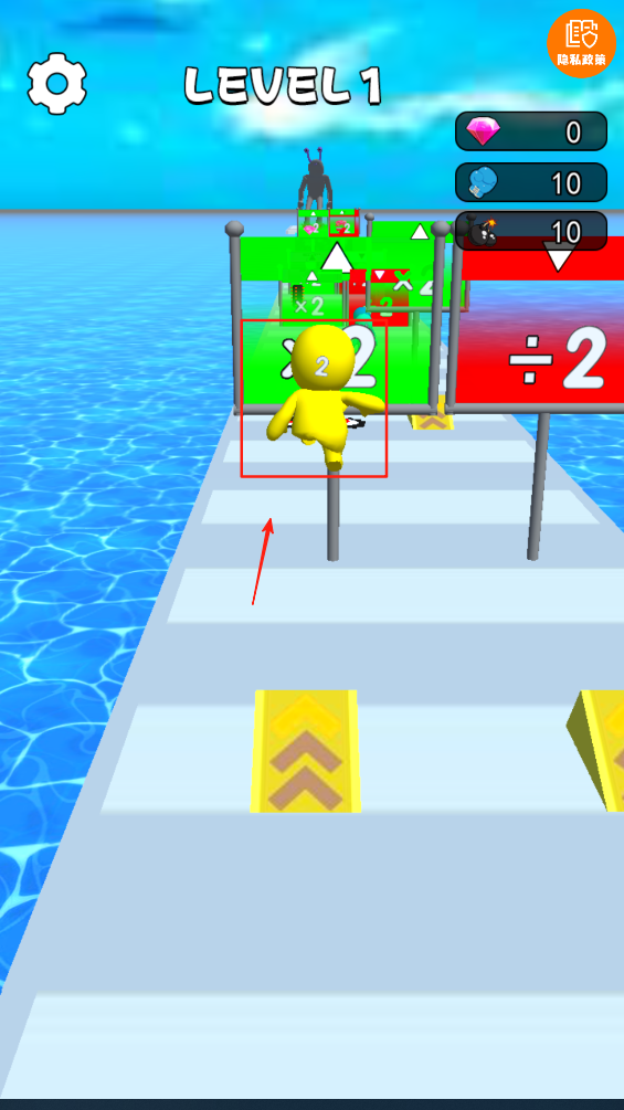 2、当角色接近绿色方块时,点击屏幕让角色跳上方块,增加攻击力。