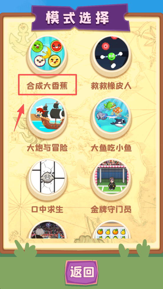 3、在模式选择界面,点击“合成大香蕉”,选择你的游戏模式。