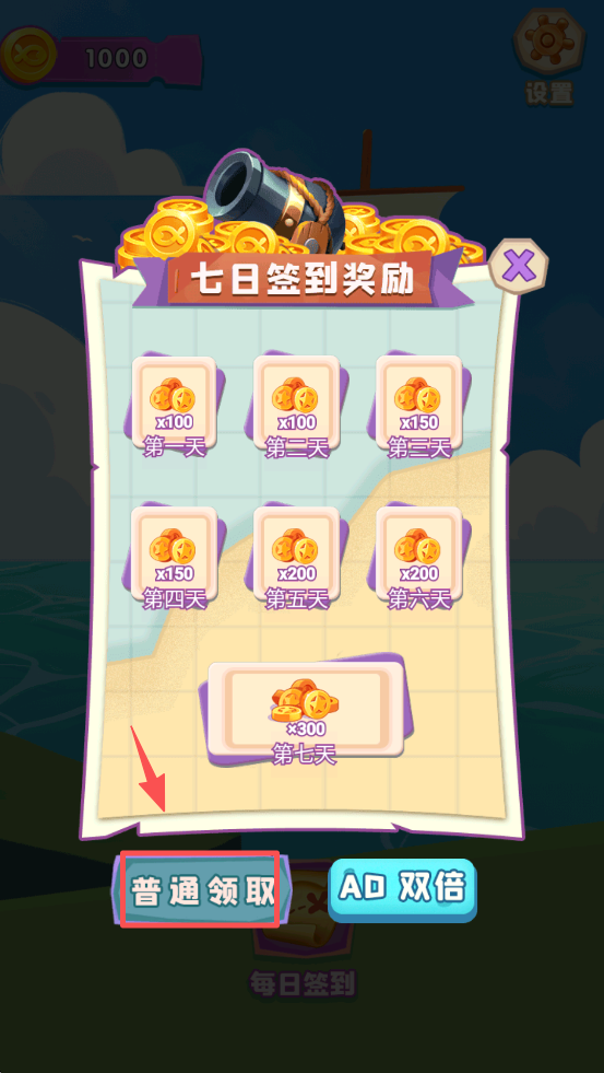 2、点击“每日签到”按钮,领取每日金币奖励,连续签到可获得额外奖励。