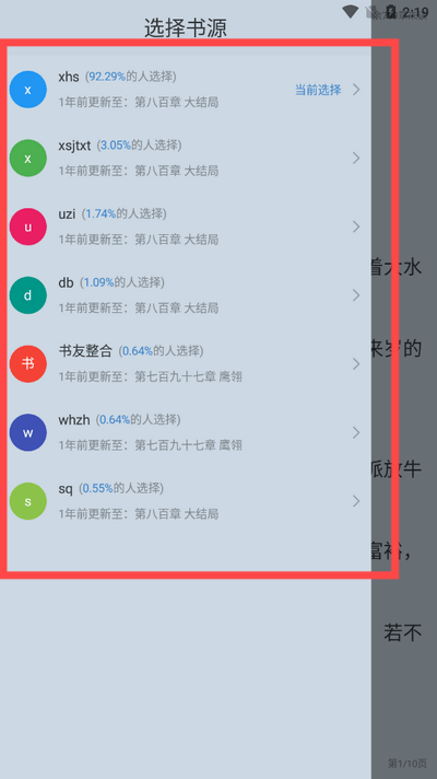 3、选择要看的书源即可开始阅读。